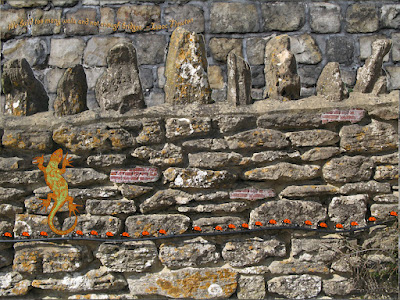 Made up from my own photos of 3 different walls and drawings of lizard and ladybirds.