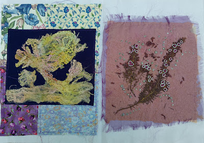 Digital print [colour test]. Machine embroidery strips. Hand embroidery, beads [I think some of these were TAST {Take a stitch Tuesday}samples]. Canvas stitching. Freehand machine embroidery.