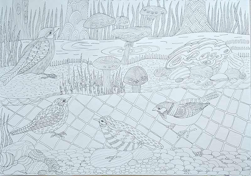 I used a whale and frogs from the practice drawings to add them to some old digital backgrounds I had done years back.